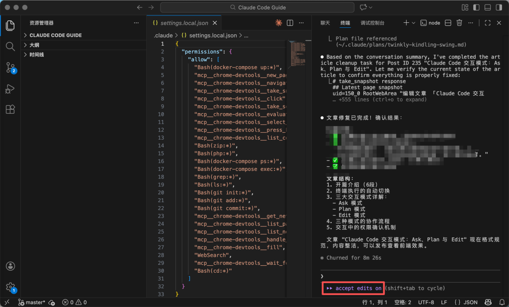 在终端中使用 Claude Code 时,你不需要手动切换模式开关,Claude 会根据你的指令内容,自动判断当前应进入哪一种模式。不过,作为使用者,你必须在 Prompt 中清楚表达自己的意图,否则 Claude 很容易做出与你预期不一致的行为。