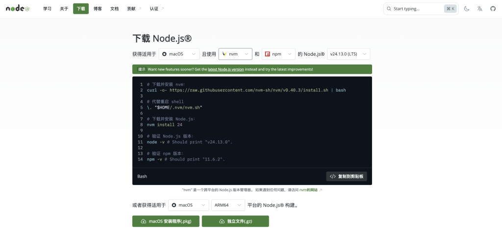 第二步:安装 Node.JS 环境